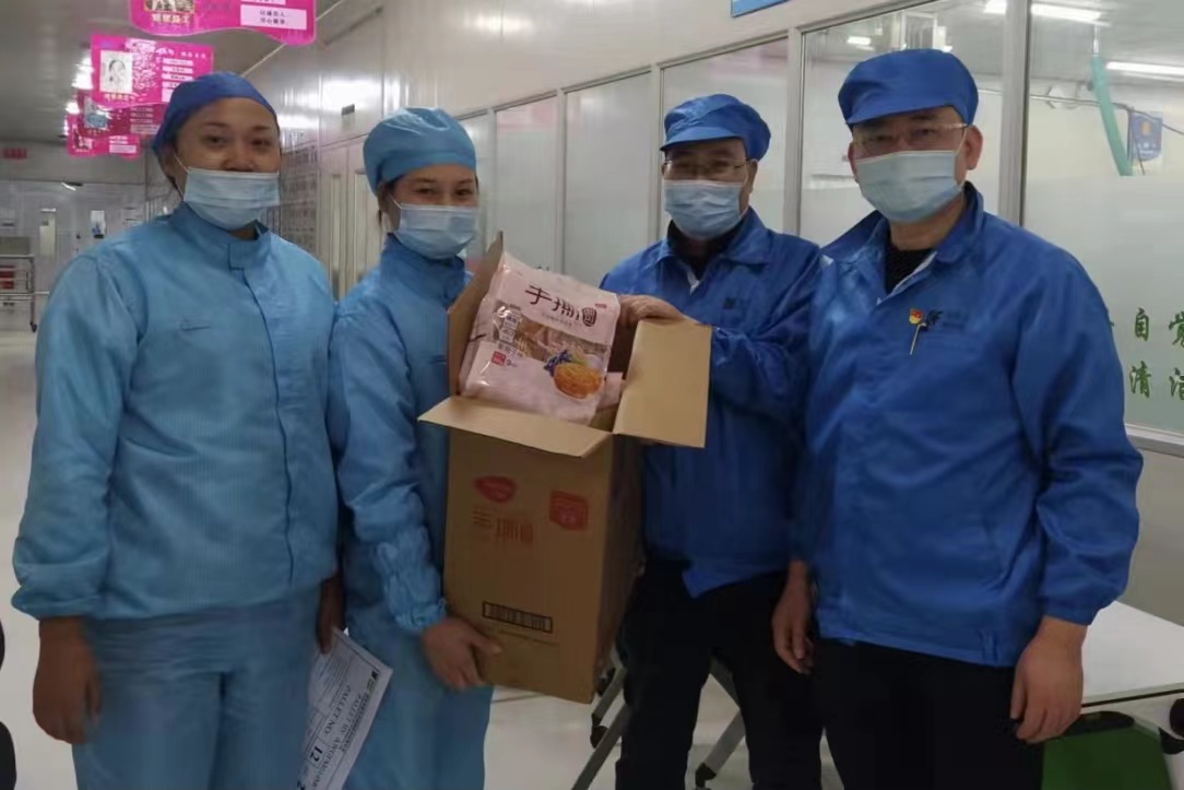 為避免人員減少時(shí)空交集幾率,后勤部為員工訂餐,送到生產(chǎn)車間供員工分散取用。為改善伙食質(zhì)量,精密公司自4月3日起每天下午三點(diǎn)為員工提供點(diǎn)心,讓員工感受到公司的溫暖。