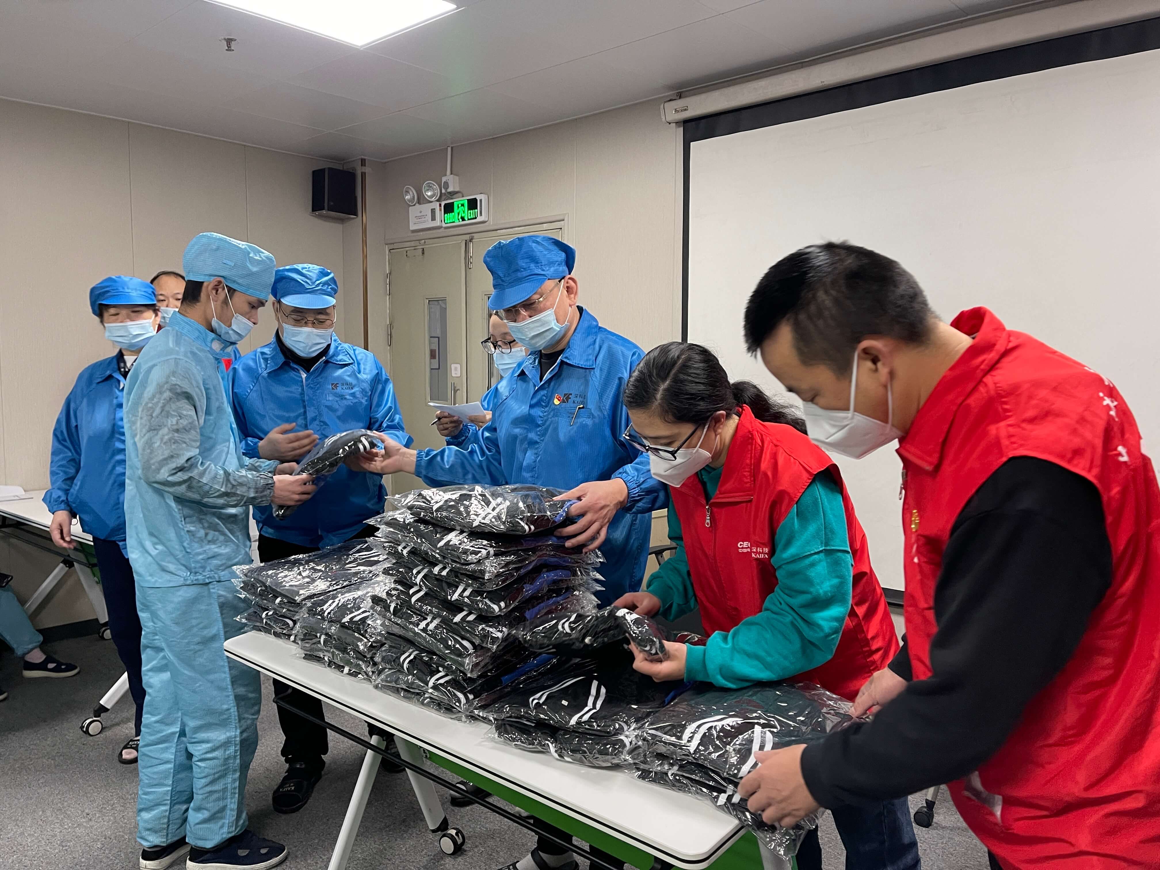既送清涼,又送溫暖。進(jìn)入封控管理的第4天,深圳石巖的天氣由溫?zé)狍E然到冰涼,前幾日發(fā)出的“送清涼”T恤43件已不能御寒,公司工會(huì)連夜整備“送溫暖”長(zhǎng)袖會(huì)員服及厚裝馬甲57件,發(fā)放給僅穿短袖的產(chǎn)線員工、工業(yè)園管理處、政府派駐人員。