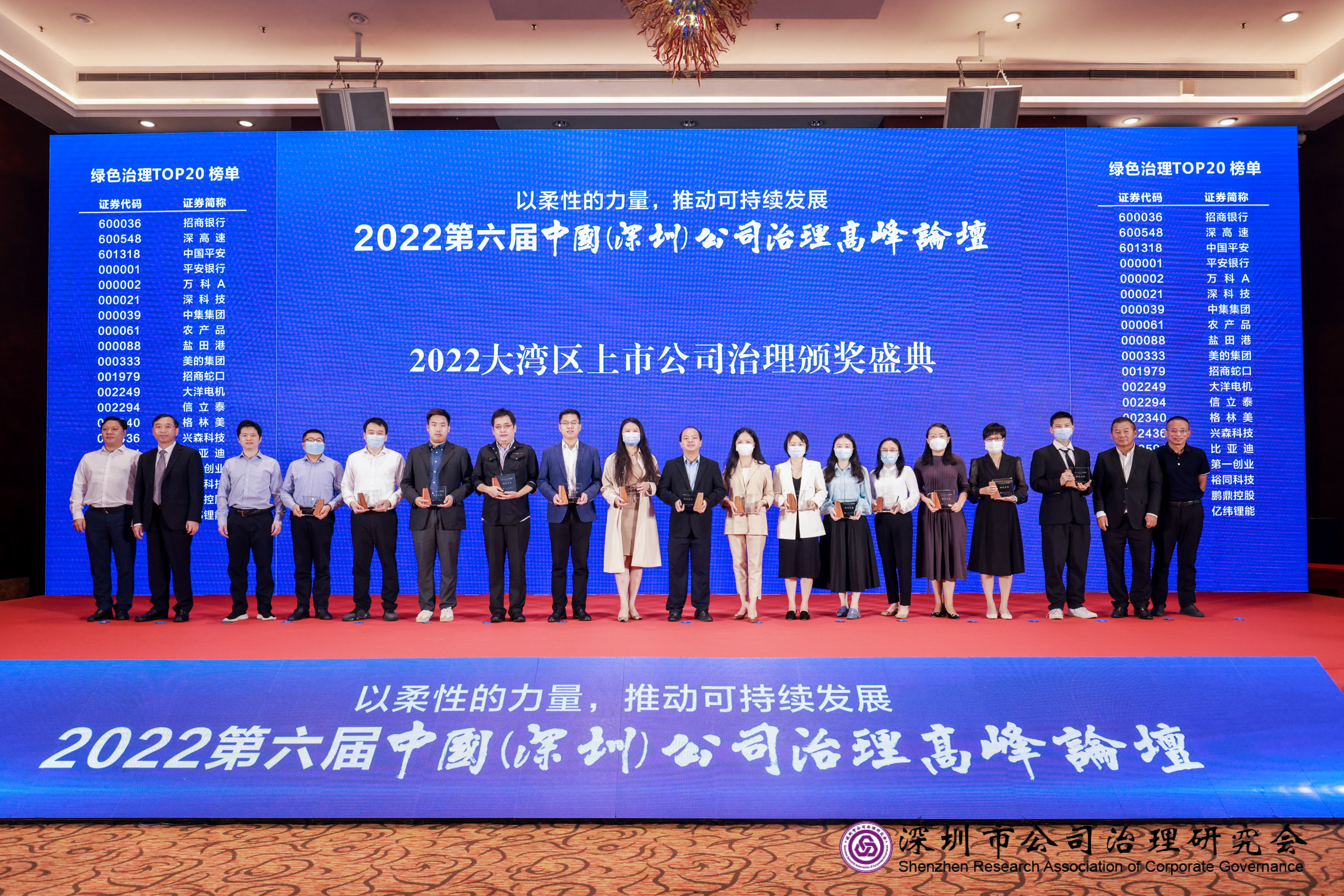 11月25日,由中國公司治理研究院、深圳證券交易所、深圳市地方金融監(jiān)督管理局、福田區(qū)人民政府指導(dǎo),深圳市公司治理研究會(huì)主辦的第六屆中國(深圳)公司治理高峰論壇在深圳舉行。深科技以出色的公司治理實(shí)踐,榮膺“2022大灣區(qū)上市公司綠色治理Top20”獎(jiǎng)項(xiàng)。