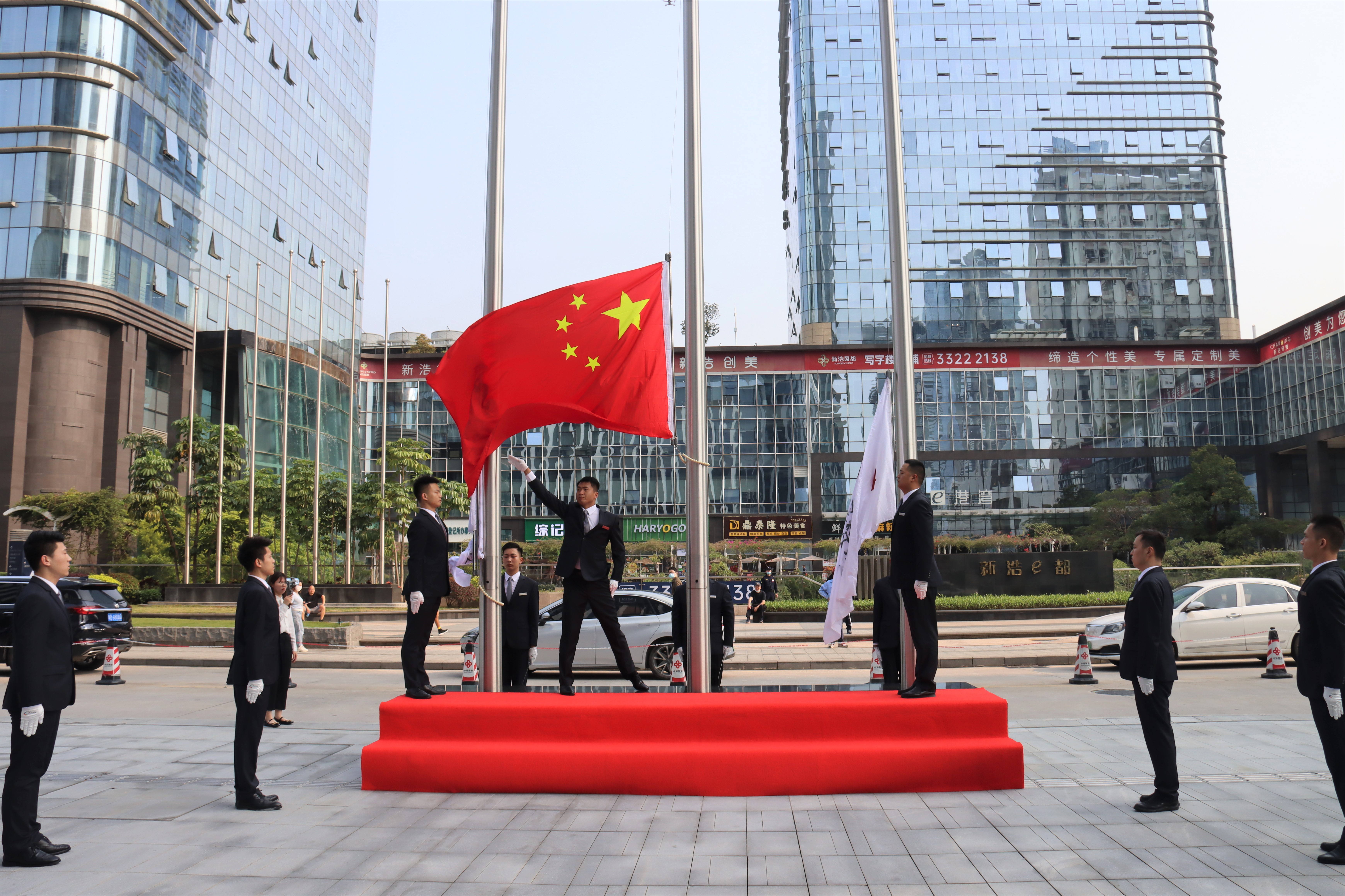 儀式現(xiàn)場(chǎng),隨著一聲“我宣布,深科技新辦公樓啟用儀式正式開(kāi)始”,活動(dòng)正式拉開(kāi)序幕。迎著朝陽(yáng),一隊(duì)護(hù)旗手邁著鏗鏘有力的步伐走向升旗臺(tái),伴隨著雄壯的《義勇軍進(jìn)行曲》,五星紅旗、深科技司旗、深科技城旗幟冉冉升起,隨風(fēng)飄揚(yáng)。出席活動(dòng)的領(lǐng)導(dǎo)攜全體員工整齊列隊(duì),以飽滿的姿態(tài)向國(guó)旗行注目禮,表達(dá)對(duì)祖國(guó)的無(wú)限熱愛(ài)和崇高敬意,展現(xiàn)深科技人團(tuán)結(jié)一致、凝心聚力的良好精神風(fēng)貌.