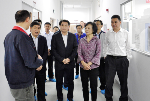 3月30日下午,徐建華來到東莞產(chǎn)業(yè)園。在長城開發(fā)園區(qū),公司黨委書記、副總裁陳朱江熱情地接待了徐建華一行,并陪同參觀最新進駐的通訊與消費電子事業(yè)部和國內(nèi)智能電表事業(yè)部。其中,智能電表生產(chǎn)線在廣泛推行自動化轉型升級的成果引起了徐建華的注意。陳朱江介紹說,這條電表組裝生產(chǎn)線的自動化程度處于業(yè)內(nèi)領先水平,通過一系列自動化設備更新,優(yōu)化工藝技術流程,可將工人數(shù)量降低60%,從而減少企業(yè)人力成本,提高了勞動生產(chǎn)率和產(chǎn)品優(yōu)質(zhì)率。徐建華對此表示肯定,并稱這符合東莞“機器換人”扶持政策,要求有關部門協(xié)助企業(yè)進行申報。