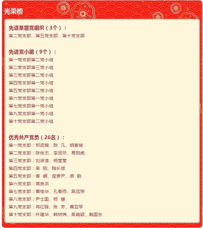 活動中,對在2017-2018年度黨建工作中成績優(yōu)異的3個基層黨組織,9個先進黨小組以及26名優(yōu)秀共產黨員進行了表彰。