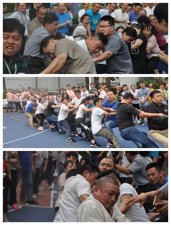 比賽通過(guò)抽簽決定對(duì)手,各參賽隊(duì)伍均派出了10男6女的強(qiáng)大參賽陣容,隨著裁判員的一聲“哨”響,拔河比賽正式開(kāi)始,參賽隊(duì)員緊握長(zhǎng)繩,伴隨著富有節(jié)奏的吶喊聲、加油聲使出全身力氣齊心協(xié)力往后發(fā)力,尾端的隊(duì)員干脆將繩子纏繞在自己身上,像纖夫般往后使勁,尤其是在勝負(fù)難分僵持不下的時(shí)刻,各參賽選手更是竭盡全力堅(jiān)守陣地。